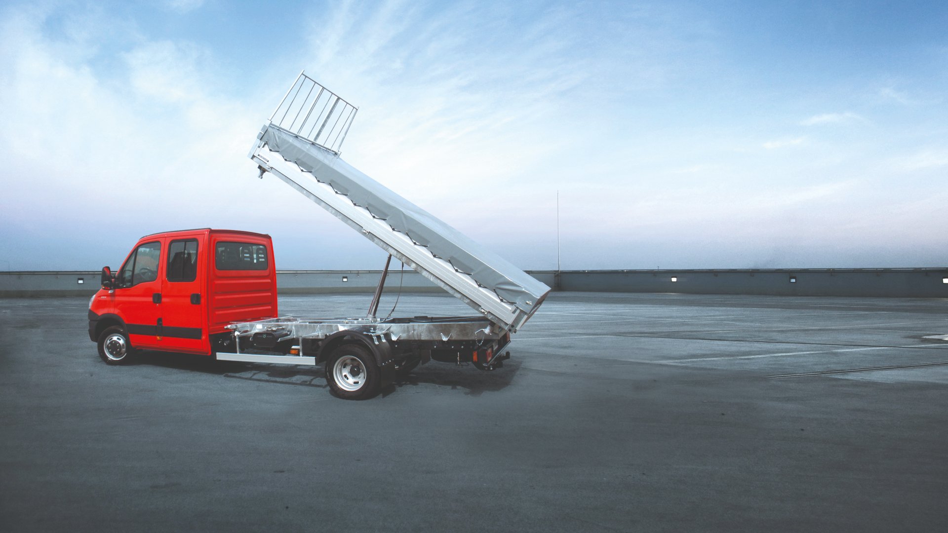 Valníkové nástavby s možností sklápění korby do tří stran. Hydraulické čerpadlo zajišťuje plynulé sklopení korby a vysypání nákladu. Tyto nástavby vyrábíme z hliníkových a ocelových komponentů pro zajištění vysoké životnosti i v těch nejnáročnějších podmínkách. Sklopné nástavby vyrábíme do maximální hmotnosti vozidla 12 tun.